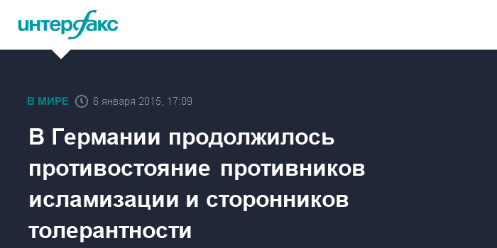 Москва. 6 января. INTERFAX.RU - Ряд известных политических и общественных деятелей Германии подписали декларацию против организации "Пегида", которая в знак протеста против исламизации Германии вывела тысячи своих сторонников на улицы германских городов.