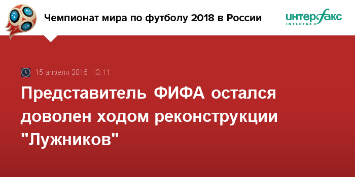 Москва. 15 апреля. INTERFAX.RU - Представители Международной федерации футбола (ФИФА) удовлетворены ходом и качеством работ по реконструкции стадиона "Лужники", заявил журналистам в среду начальник отдела строительного контроля КП "БСА "Лужники" (Казенное предприятие города Москвы Большая спортивная арена "Лужники") Мурат Ахмадиев.