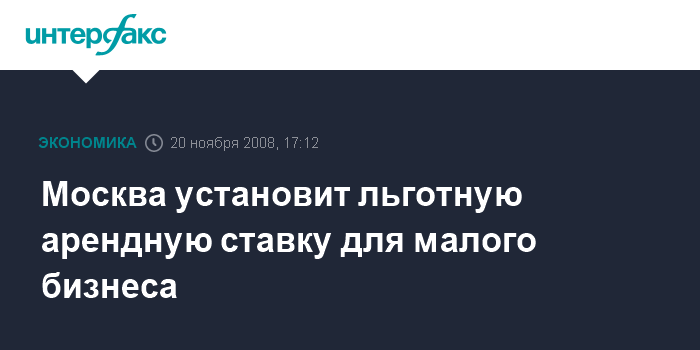 Москва. 20 ноября. INTERFAX.RU - Правительство Москвы приняло решение установить льготную арендную тарифную ставку для малого бизнеса в 2009 г., сообщил журналистам первый заместитель мэра в правительстве столицы Юрий Росляк в четверг.