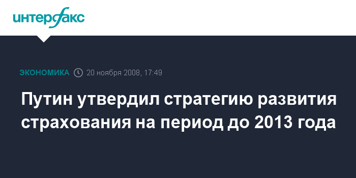 Путин утвердил стратегию развития страхования на период до 2013 года