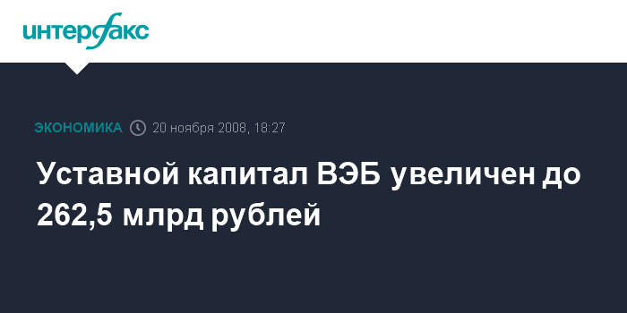 В настоящее время уставный капитал ВЭБа составляет около 262,5 млрд рублей.