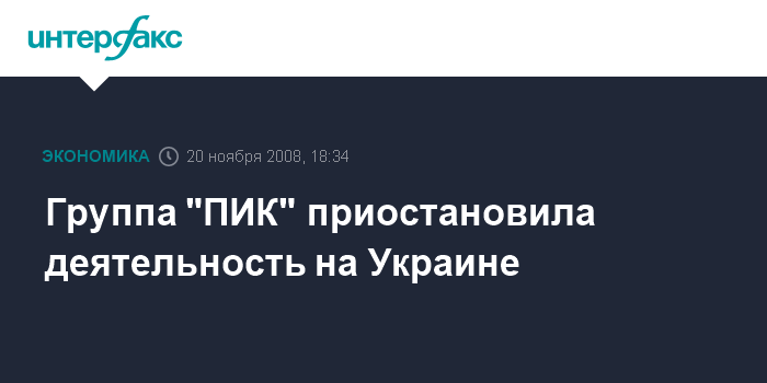 Москва. 20 ноября. INTERFAX.RU - Российская группа компаний "ПИК" приостановила деятельность на рынке недвижимости Украины.