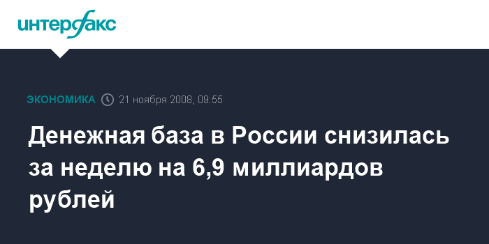 Между тем, на 10 ноября денежная база в России составляла 4416,6 млрд рублей. Таким образом, за неделю она сократилась на 6,9 млрд рублей.