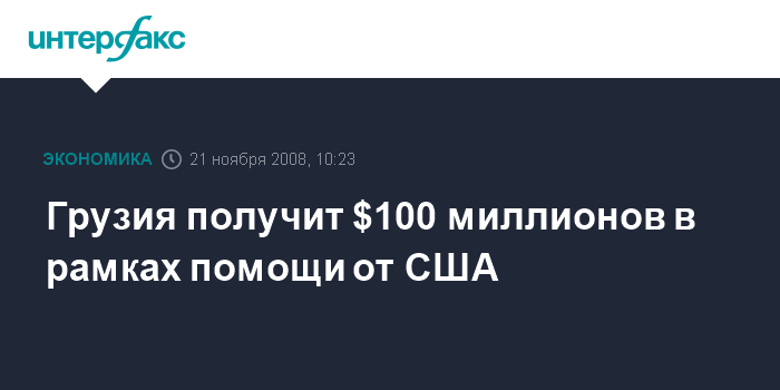 Москва. 21 ноября. INTERFAX.RU - Грузия получит дополнительно $100 млн в рамках правительственной программы США Millenium Challenge Account, сообщил министр финансов Грузии Ника Гилаури журналистам в четверг. Соответствующий договор подписали премьер-министр Грузии Григол Мгалоблишвили и исполнительный директор Millenium Challenge Account Джон Данилович в Тбилиси в четверг.