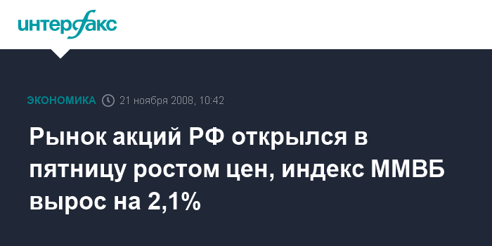 Рынок акций РФ открылся в пятницу ростом цен, индекс ММВБ вырос на 2,1%