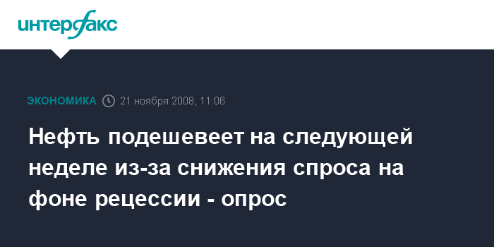 Москва. 21 ноября. INTERFAX.RU - Стоимость нефти может снизиться на следующей неделе на опасениях, что рецессия в США, Европе и Японии приведет к дальнейшему снижению спроса, сообщило агентство Bloomberg.