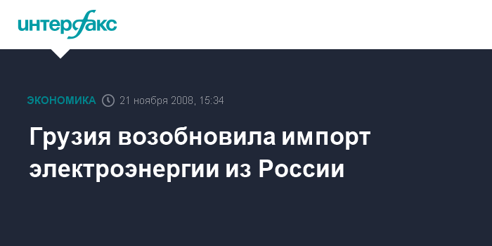 Москва. 21 ноября. INTERFAX.RU – Грузия возобновила импорт электроэнергии из России, сообщила "Интерфаксу" руководитель службы по связям с общественностью ООО "Коммерческий оператор электроэнергетической системы Грузии" Ани Брегвадзе.
