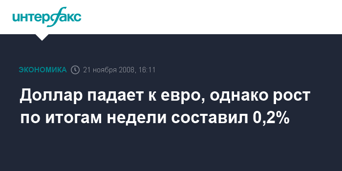 Москва. 21 ноября. INTERFAX.RU – Доллар США завершил неделю ростом к евро на 0,2%, несмотря на снижение курса в последние два дня на ожиданиях снижения базовой процентной ставки Федеральной резервной системой США, сообщило агентство Bloomberg.