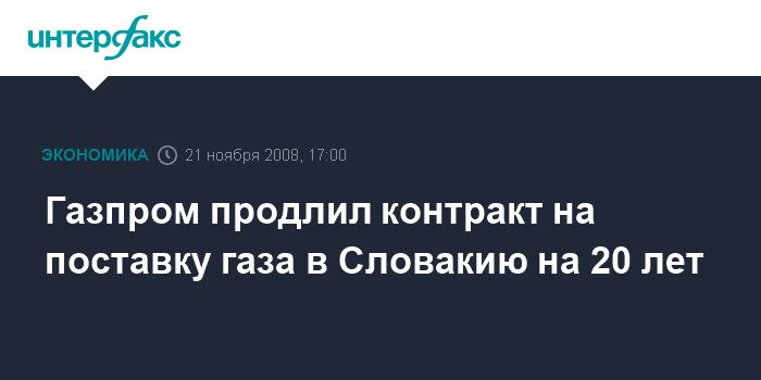 Газпром продлил контракт на поставку газа в Словакию на 20 лет