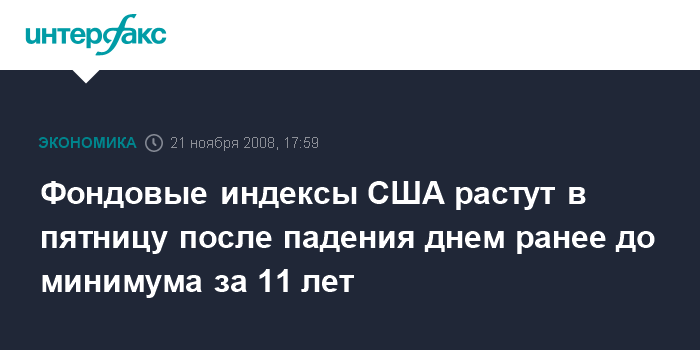 Фондовые индексы США растут в пятницу после падения днем ранее до минимума за 11 лет