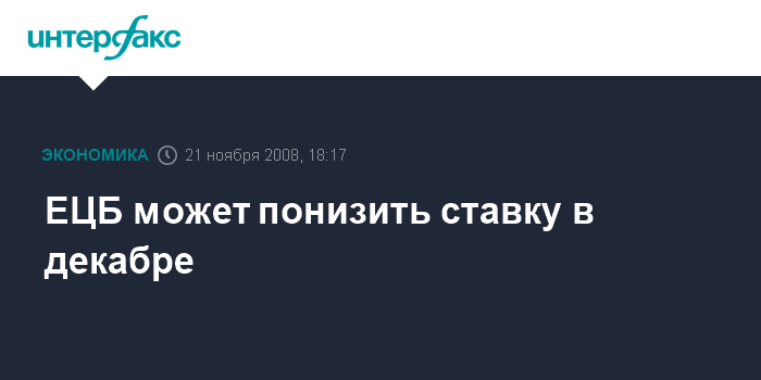Москва. 21 ноября. INTERFAX.RU - Европейский центральный банк (ЕЦБ) может вновь понизить базовую процентную ставку на следующем заседании, которое состоится 4 декабря, заявил глава банка Жан-Клод Трише, сообщает агентство Bloomberg.