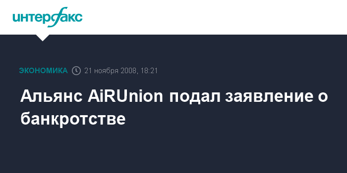 Москва. 21 ноября. INTERFAX.RU - ООО "ЭйрЮнион" - управляющая компания альянса AiRUnion - подала в Арбитражный суд Москвы иск о несостоятельности (банкротстве), свидетельствуют материалы суда. Иск был зарегистрирован в пятницу, 21 ноября. Дата рассмотрения еще не назначена.