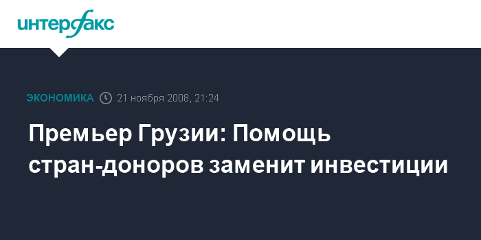 Москва. 21 ноября. INTERFAX.RU - В Грузию сократился приток иностранных инвестиций, которые являлись движущей силой экономики, но выйти из положения помогут финансовые вливания из стран-доноров, заявил премьер Грузии Григол Мгалоблишвили.