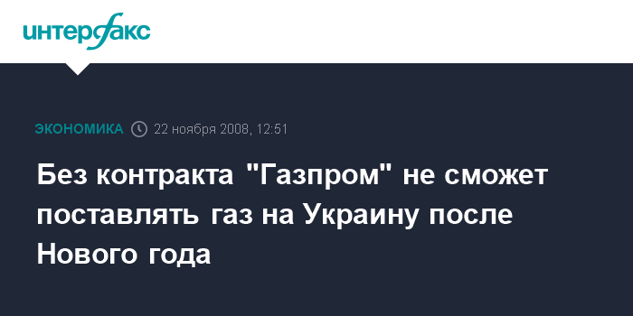 Москва. 22 ноября. INTERFAX.RU - ОАО "Газпром" хотел бы избежать прекращения поставок газа Украине после Нового года, но без контракта поставлять газ не сможет.