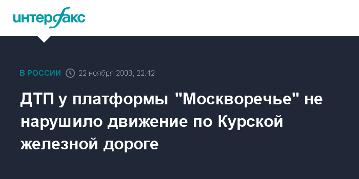 ДТП у платформы "Москворечье" не нарушило движение по Курской железной дороге