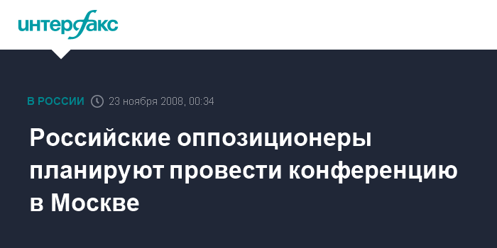 Москва. 23 ноября. ИНТЕРФАКС - Активисты российской оппозиции, как ожидается, проведут в воскресенье в Москве региональную конференцию новой общественной организации под рабочим названием "Солидарность".