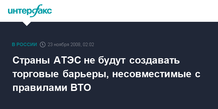 Страны АТЭС не будут создавать торговые барьеры, несовместимые с правилами ВТО