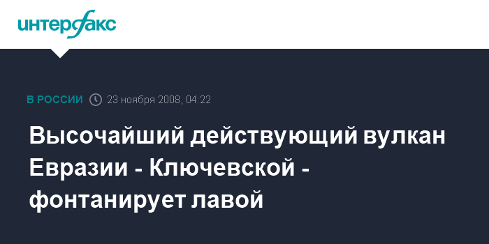 Петропавловск-Камчатский. 23 ноября. ИНТЕРФАКС-ДАЛЬНИЙ ВОСТОК - Извергающийся с октября месяца Ключевской вулкан на Камчатке начал фонтанировать лавой.