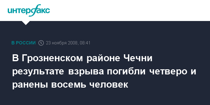 В Грозненском районе Чечни результате взрыва погибли четверо и ранены восемь человек