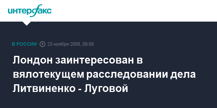 "В целом процесс расследования этого дела с британской стороны можно назвать вялотекущим. Мы рассчитывали, что за год что-то изменится, но ситуация с мертвой точки не сдвинулась", - заявил А.Луговой "Интерфаксу", комментируя ход расследования дела А.Литвиненко, который скончался в Лондоне ровно два года назад.