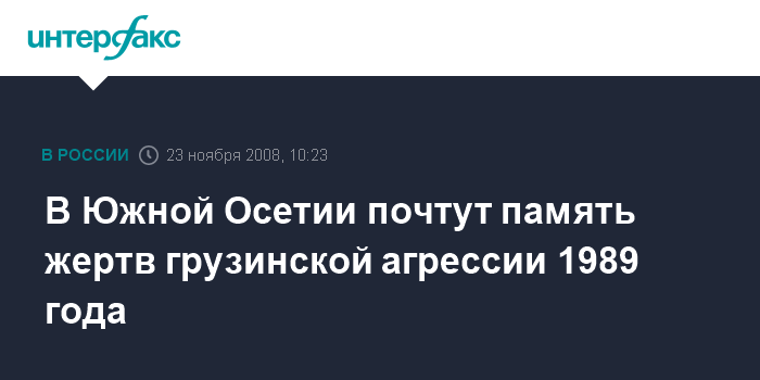 "19 лет назад, 23 ноября 1989 года, против грузинской армады встали безоружные молодые защитники Отечества, нашей республики. Этот день вошел в историю республики как начало героической летописи борьбы за независимость Южной Осетии", - сообщила "Интерфаксу" государственный советник президента Южной Осетии Жанна Зассеева.
