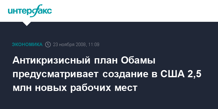 Антикризисный план Обамы предусматривает создание в США 2,5 млн новых рабочих мест