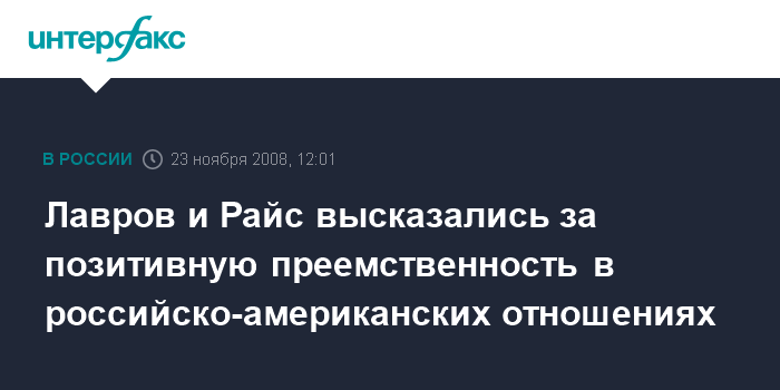 Лавров и Райс высказались за позитивную преемственность в российско-американских отношениях