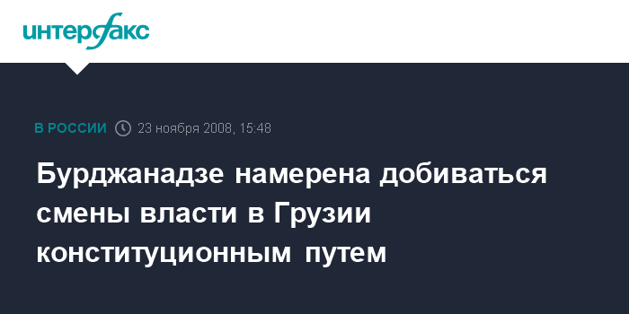 "Вчера выступил наш президент и заявил, что в любой западной стране правительство подало бы в отставку, если оно находилось в условиях Грузии. Я абсолютно согласна с ним в этих оценках, так как в любой цивилизованной, демократической стране правительство, погубившее свой народ, доведя страну до катастрофы, обязательно ушло бы, или народ бы его заменил. Уверена, что и мы должны поступить также, добиться проведения выборов, и привести конституционным путем к власти новое демократическое руководство", - заявила Н.Бурджанадзе.