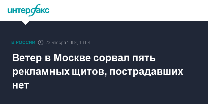 Ветер в Москве сорвал пять рекламных щитов, пострадавших нет