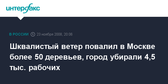Шквалистый ветер повалил в Москве более 50 деревьев, город убирали 4,5 тыс. рабочих