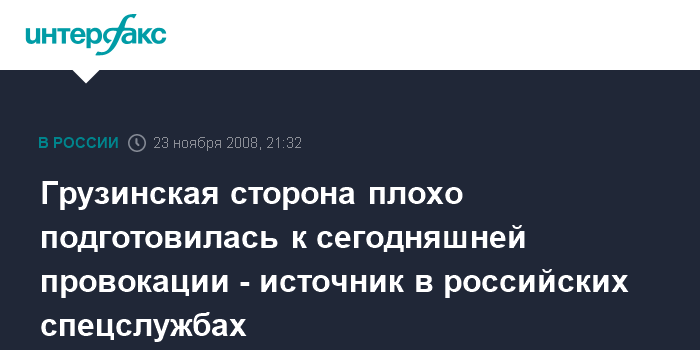 Москва. 23 ноября. ИНТЕРФАКС - В российских спецслужбах расценивают заявление грузинской стороны об обстреле территории Грузии из Южной Осетии как провокацию.