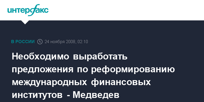 Необходимо выработать предложения по реформированию международных финансовых институтов - Медведев