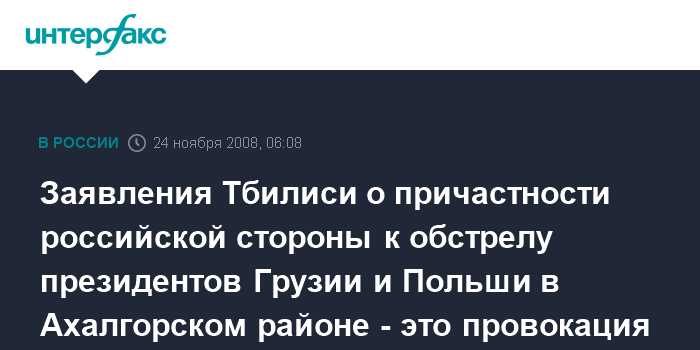 Лима. 24 ноября. ИНТЕРФАКС - Глава МИД РФ Сергей Лавров назвал провокацией заявления Тбилиси о причастности российской стороны к обстрелу кортежей президентов Грузии и Польши в Ахалгорском районе на границе с Южной Осетией. "Это провокация, самая настоящая. Не в первый раз уже подобные вещи случаются: сами все организуют, а потом обвиняют российскую или осетинскую стороны", - заявил С.Лавров журналистам в Лиме в понедельник.