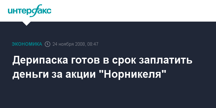 Дерипаска готов в срок заплатить деньги за акции "Норникеля"