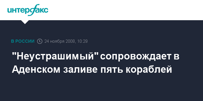 Москва. 24 ноября. INTERFAX.RU - По оценке Главного командования ВМФ России, сторожевой корабль "Неустрашимый" выполняет задачи в районе Африканского рога на достаточно высоком профессиональном уровне.