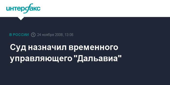 Москва. 24 ноября. INTERFAX.RU - Арбитражный суд Хабаровского края на заседании в понедельник назначил временным управляющим ОАО "Дальавиа" Вадима Веселкова, сообщил корреспондент "Интерфакса", присутствовавший на заседании.