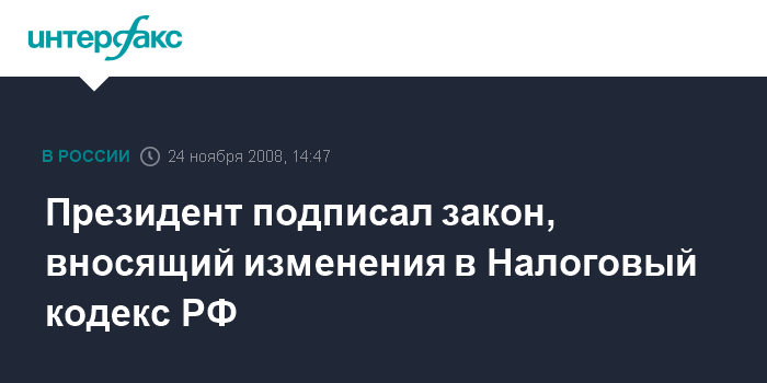 Президент подписал закон, вносящий изменения в Налоговый кодекс РФ