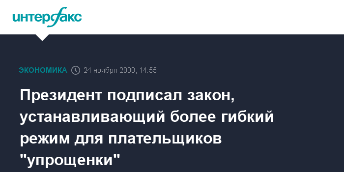 Президент подписал закон, устанавливающий более гибкий режим для плательщиков "упрощенки"