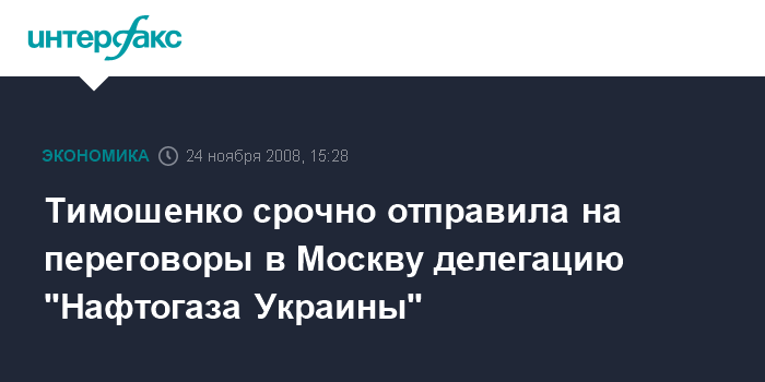 Москва. 24 ноября. INTERFAX.RU - Делегация национальной акционерной компании "Нафтогаз Украины" по поручению премьер-министра Украины Юлии Тимошенко немедленно отбывает в Россию для выяснения ситуации вокруг "газового" долга и принятия дальнейших решений.