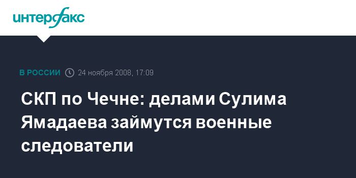 СКП по Чечне: делами Сулима Ямадаева займутся военные следователи