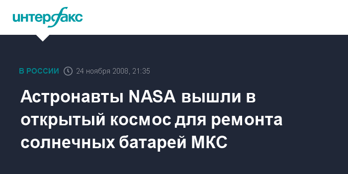 Москва. 24 ноября. INTERFAX.RU - Американские астронавты Стив Боуэн и Шейн Кимбро начали выход в открытый космос, сообщили "Интерфаксу-АВН" в Центре управления полетами (Королев, Московская область). "Ожидается, что астронавты проработают за бортом Международной космической станции шесть с половиной часов", - сказал собеседник.