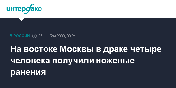На востоке Москвы в драке четыре человека получили ножевые ранения