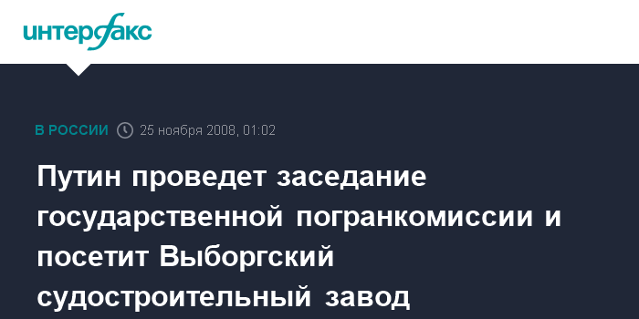 Путин проведет заседание государственной погранкомиссии и посетит Выборгский судостроительный завод