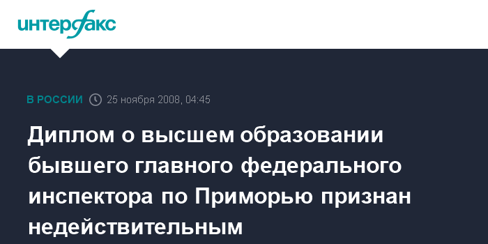 Диплом о высшем образовании бывшего главного федерального инспектора по Приморью признан недействительным