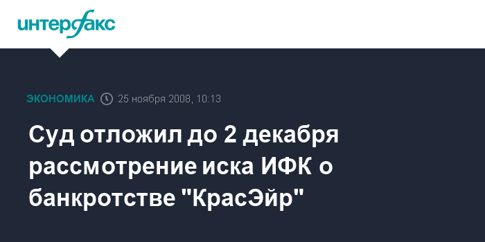 Суд отложил до 2 декабря рассмотрение иска ИФК о банкротстве "КрасЭйр"