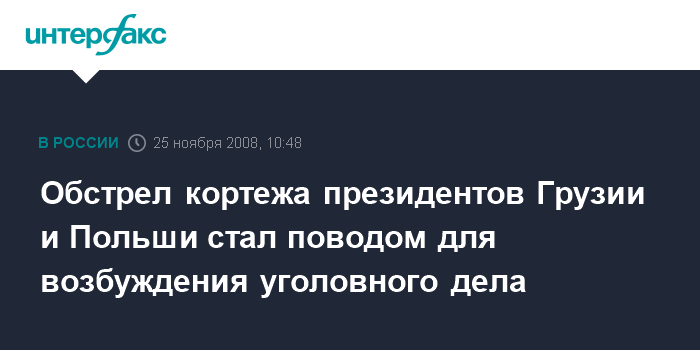 Москва. 25 ноября. INTERFAX.RU - МВД Грузии возбудило уголовное дело в связи с фактом обстрела 23 ноября у границы с Южной Осетией кортежа, в котором находились президенты Грузии и Польши - Михаил Саакашвили и Лех Качиньски.