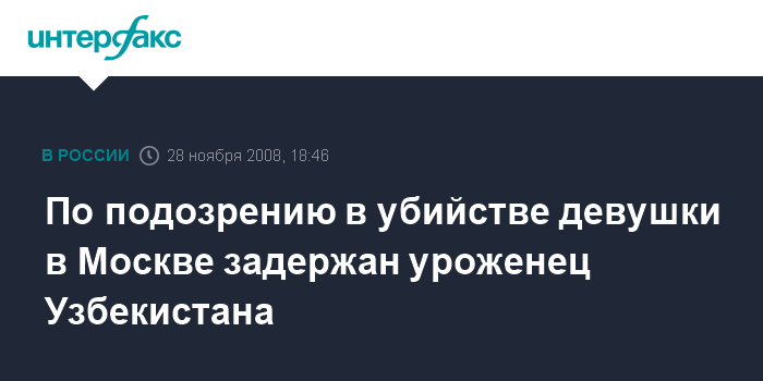 Москва. 28 ноября. INTERFAX.RU - Сотрудники Уголовного розыска УВД по Юго-Западному округу Москвы задержали уроженца республики Узбекистан по подозрению в убийстве девушки, сообщили "Интерфаксу" в пресс-службе УВД по ЮЗАО в пятницу.