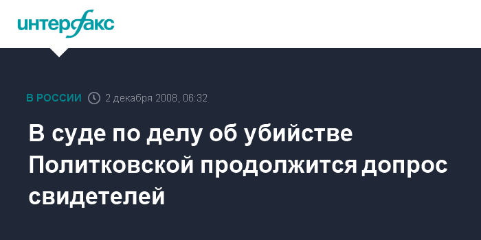 Москва. 2 декабря. ИНТЕРФАКС - В Московском окружном военном суде во вторник продолжится допрос свидетелей стороны обвинения по делу об убийстве обозревателя "Новой газеты" Анны Политковской.