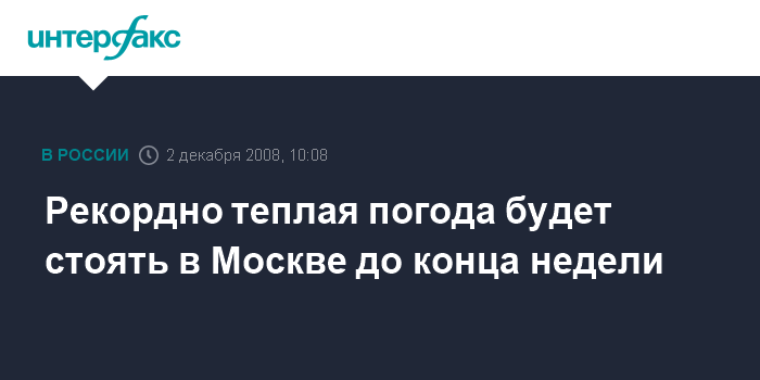 Москва. 2 декабря. INTERFAX.RU - Аномально теплая погода продлится в столице до конца текущей недели, сообщили "Интерфаксу" в Гидрометеобюро Москвы и Московской области во вторник.