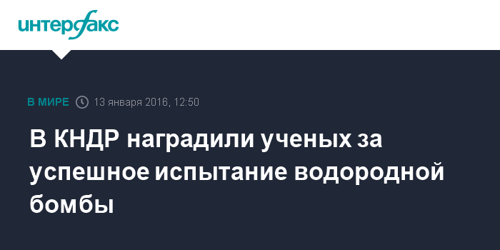 Москва. 13 января. INTERFAX.RU - Ученые и другие граждане КНДР, ответственные за испытание водородной бомбы, которое в Пхеньяне считают успешным, получили награды за проделанную работу, сообщает в среду сайт британского издания The Independent.